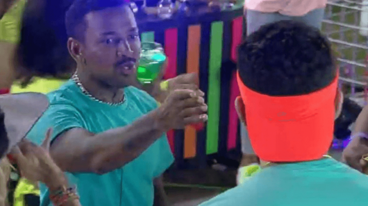Parado em um canto da pista, Rico chamou o cantor. "Essa camisinha...", começou o ex-MTV na madrugada deste sábado (25). "Cara, eu levei a camisinha", respondeu Nego. "Para você e ela [poderem usar], era, eu estou olhando vocês dois", interrompeu o alagoano.