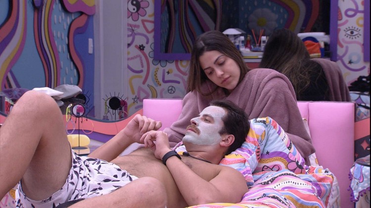 Mais cedo, o brother mudou o visual e tirou a barba, ficando só de bigode, e disse para Laís: "Vou precisar de uma skincare porque essa pele está virgem".